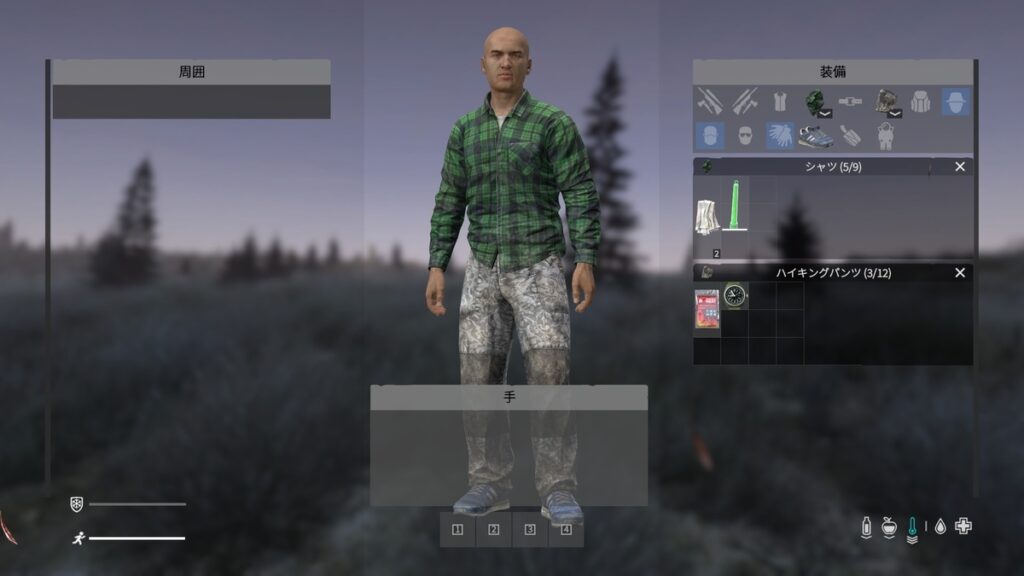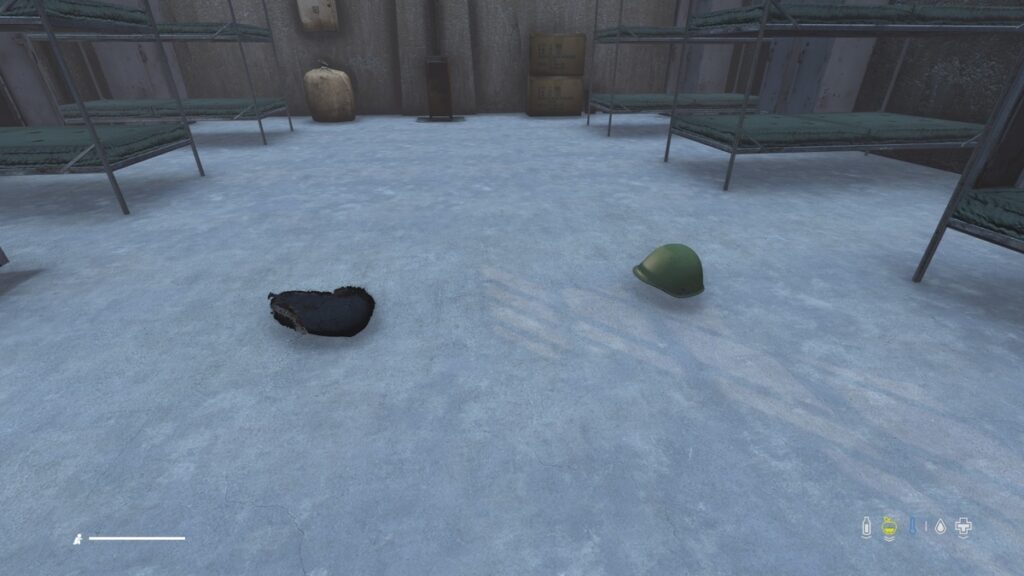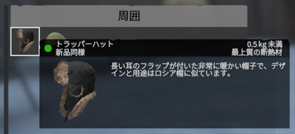 低体温症、および凍傷にかかるのを防ぐため、未装備の部位のものを見つけたら手あたり次第に装備していきましょう。