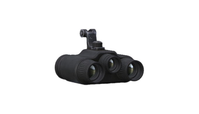 光の少ない環境で映像を見やすくする電池式の暗視ゴーグル。マウント式システムがある。