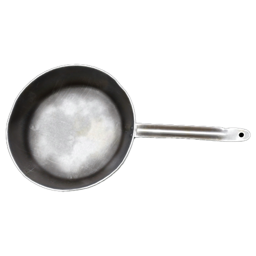 鋳鉄製のフライパン。様々な食材を調理したり、自己防衛の道具として使える。