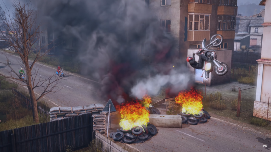 映像では、Chernarusマップエレク に簡易的なコースを設置し、バイクで走行する様子が確認できます。ただし開発チームは、
