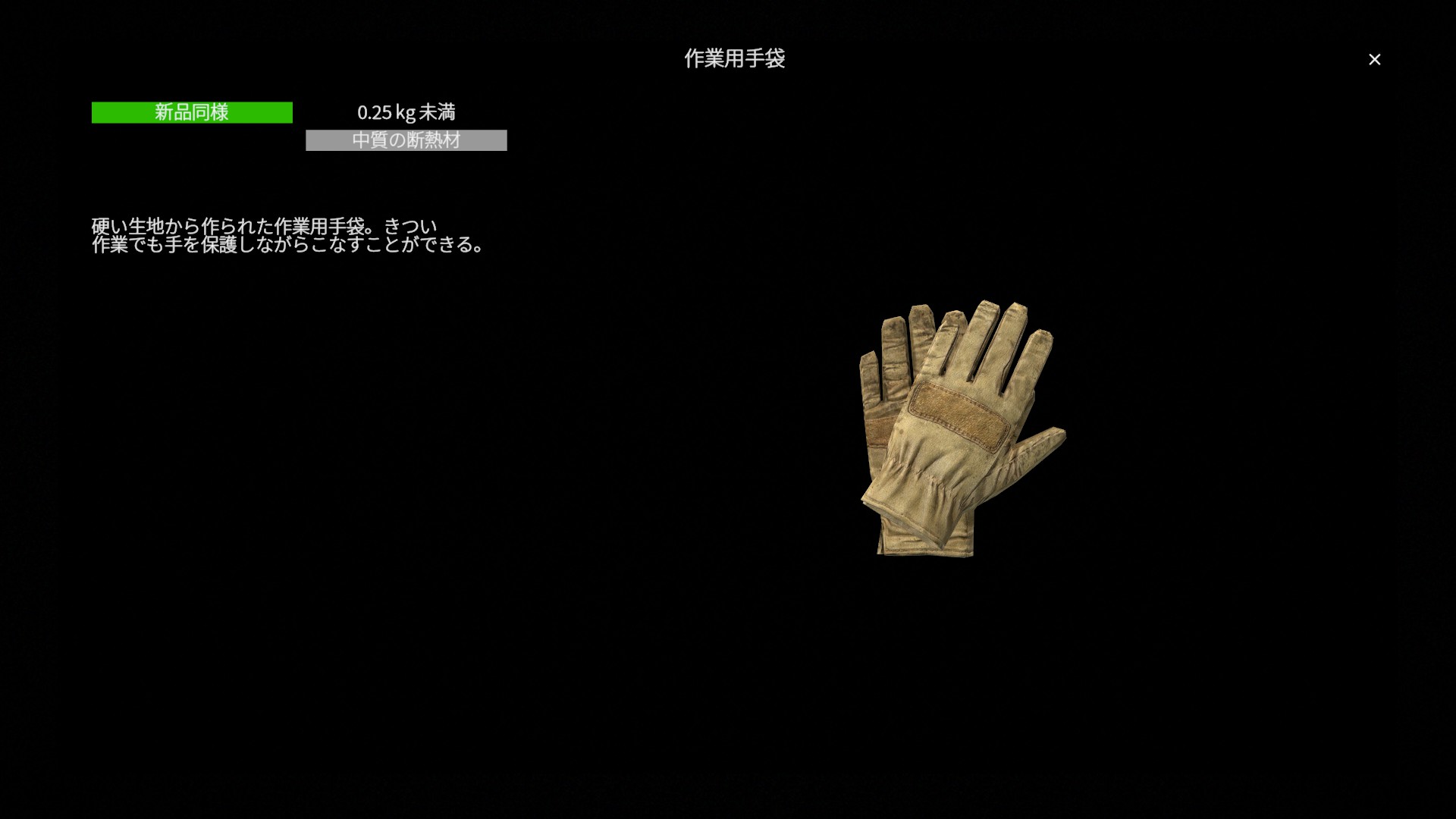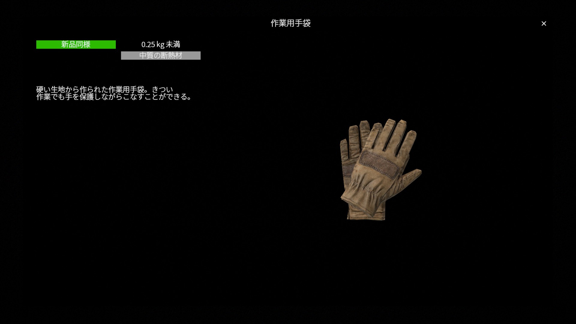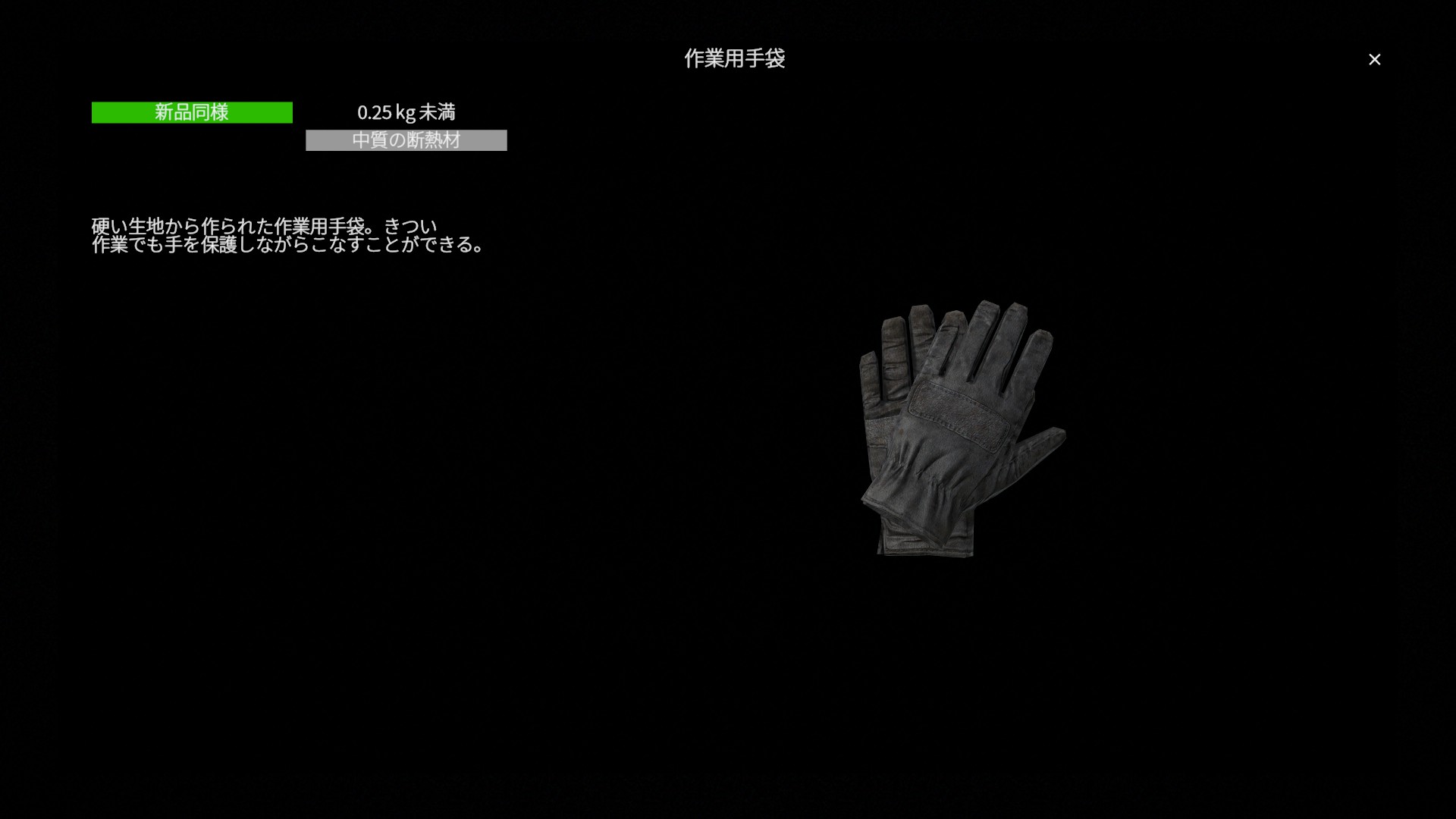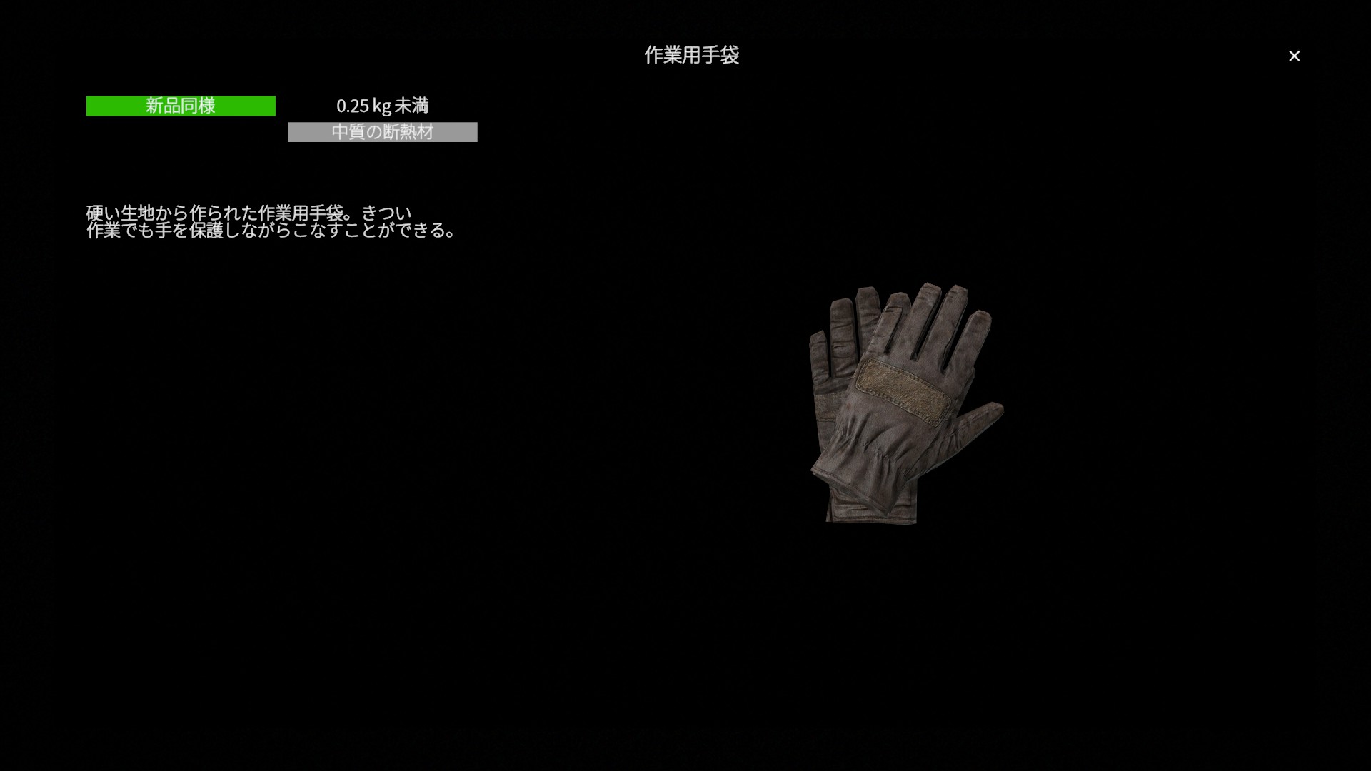 作業用手袋(WorkingGloves)は、 実用性を重視した標準的な手袋装備 です。