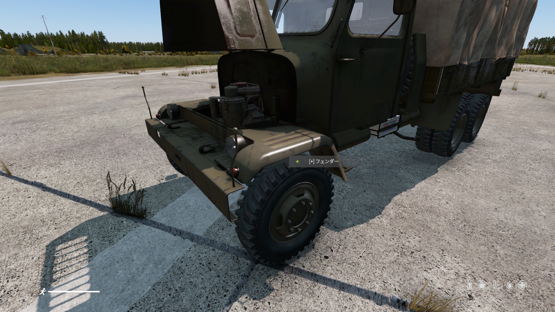 ボンネット・反射板・ドア・ルーフ・ガラス・タイヤ・木製のあおり・タープカバー・燃料タンクなどのパーツにダメージが入っても、本体の耐久には直接影響しません。 パーツは個別に破壊されますが、 それだけで車両が壊れることはありません。