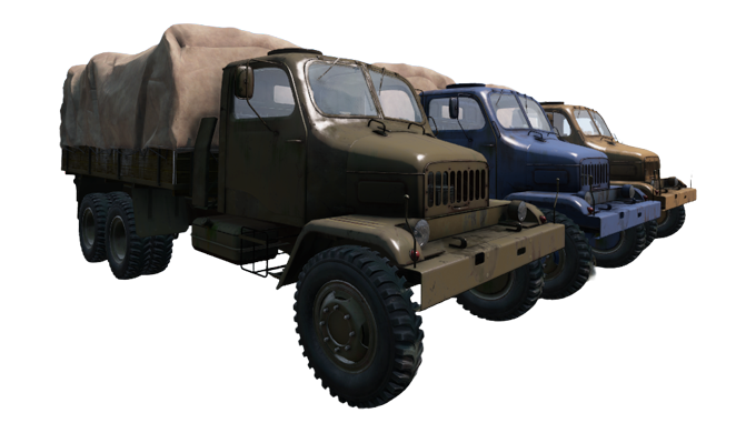 | 約60km/h | 2 | 600 | ドラム缶 x4 木製の箱 x4 | 丸太 x50 板 x100 金属板 x40 予備タイヤx 2 | 120 | トラックバッテリー | 前:M3S車輪 ×2 後:M3S複車輪 ×4 | 不可 |