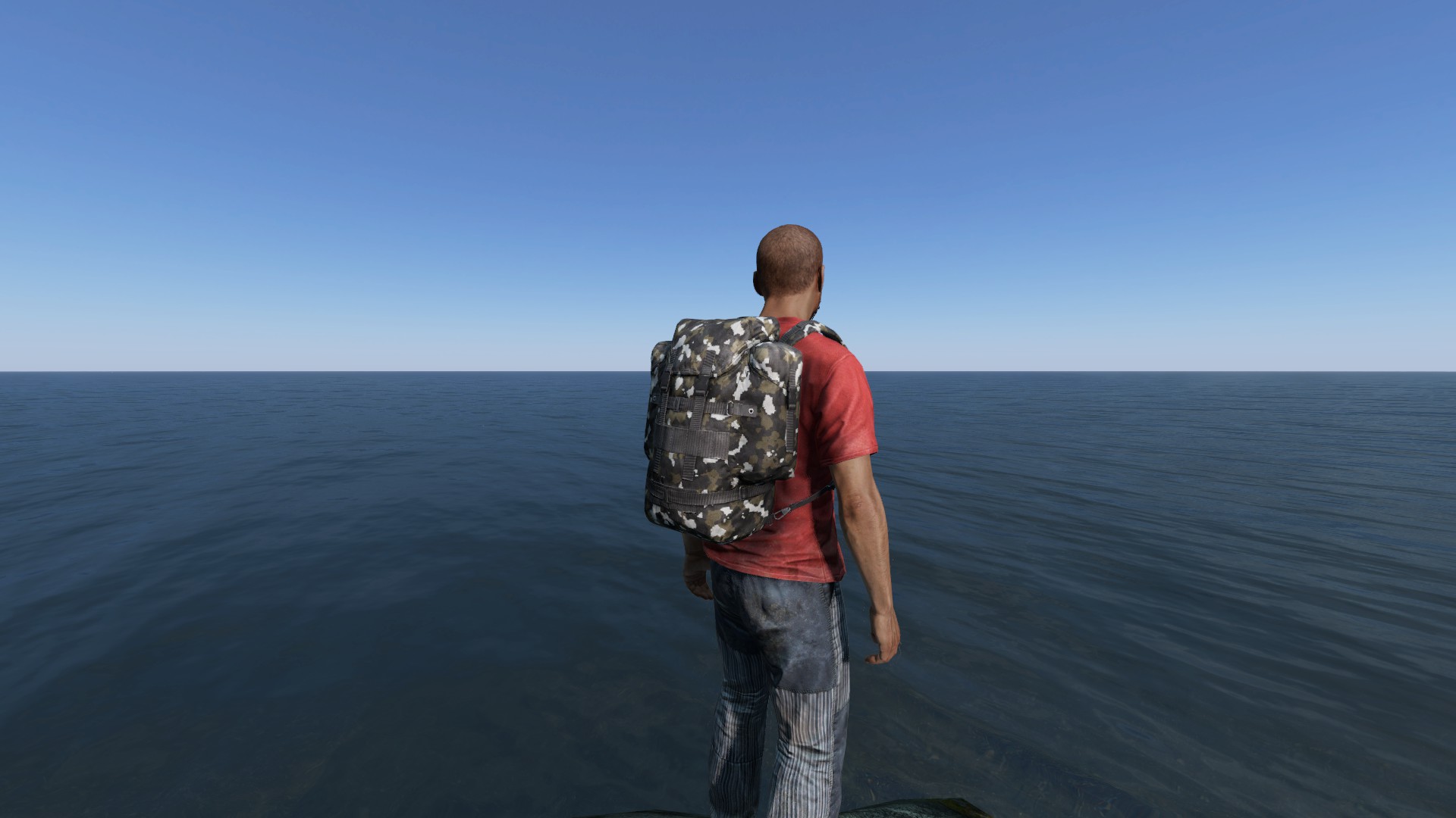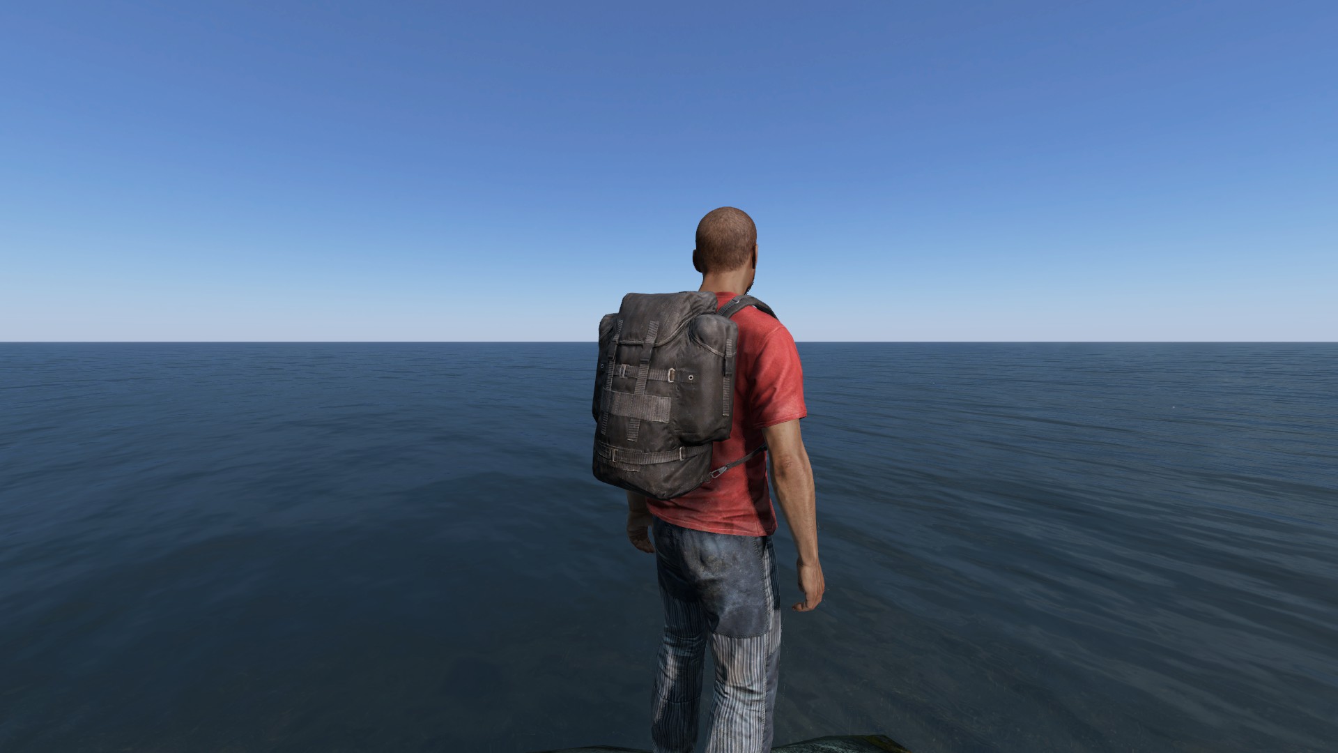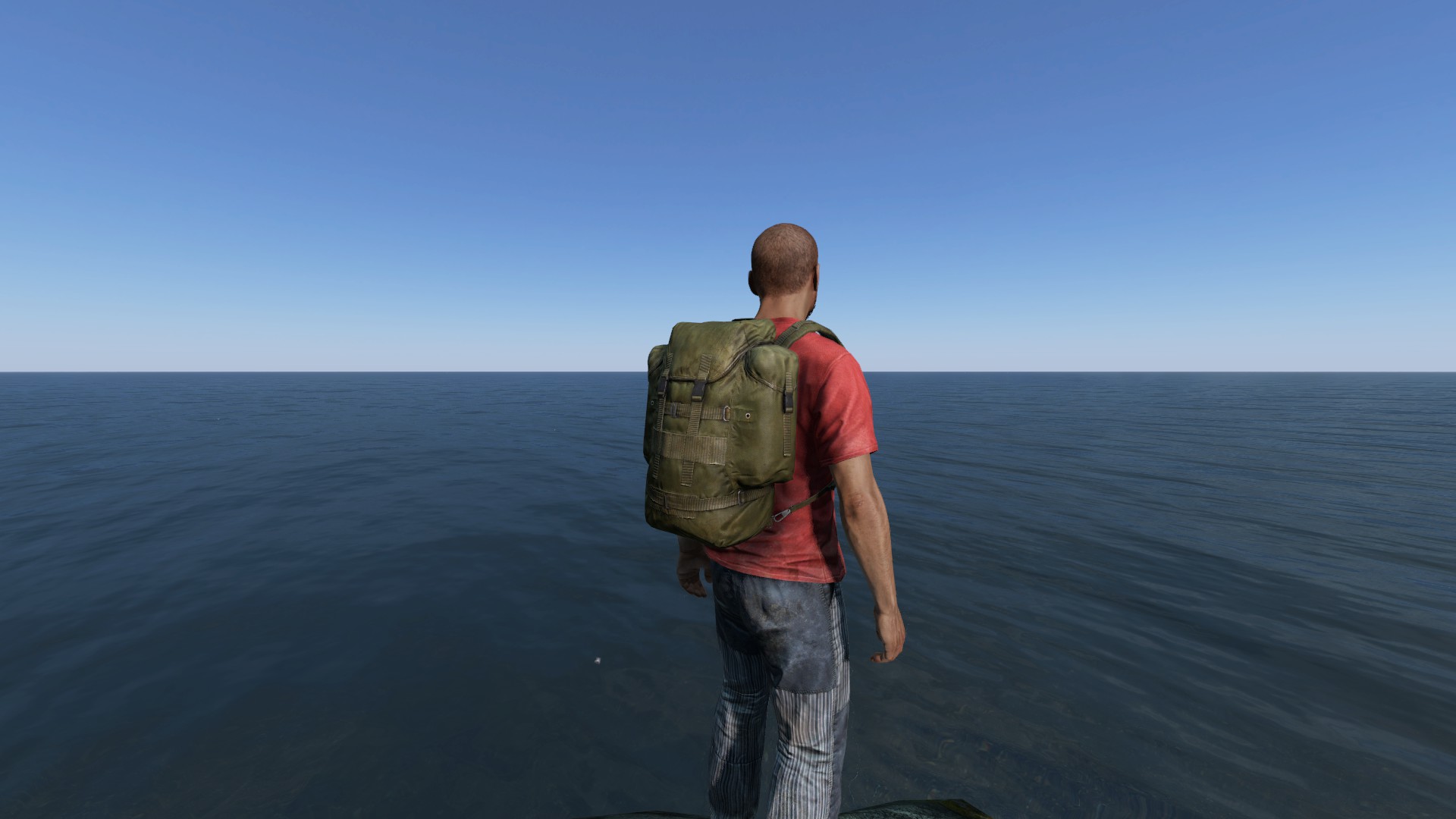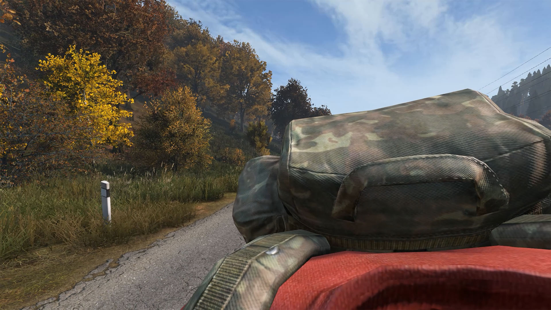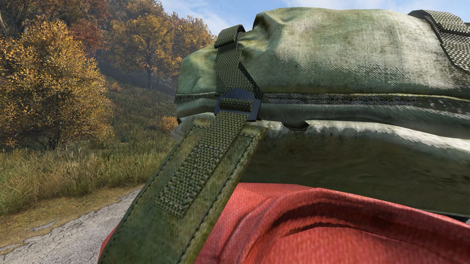 1人称視点の場合、スプリント中にフリールックで後ろを振り向いた際、大型のバックパックよりは後方の視界を妨げない点も大きな利点の一つです。