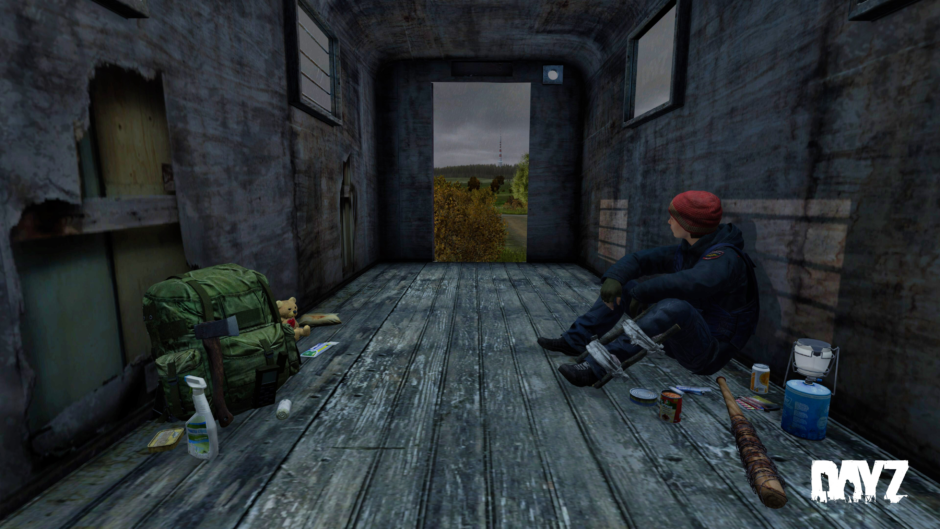 今月の壁紙は、コンテナの中でひと休みするサバイバーの姿を描いた一枚です。足元に置かれた装備や物資、外に広がる少し色づき始めた景色が、季節の移ろいを感じさせますね。