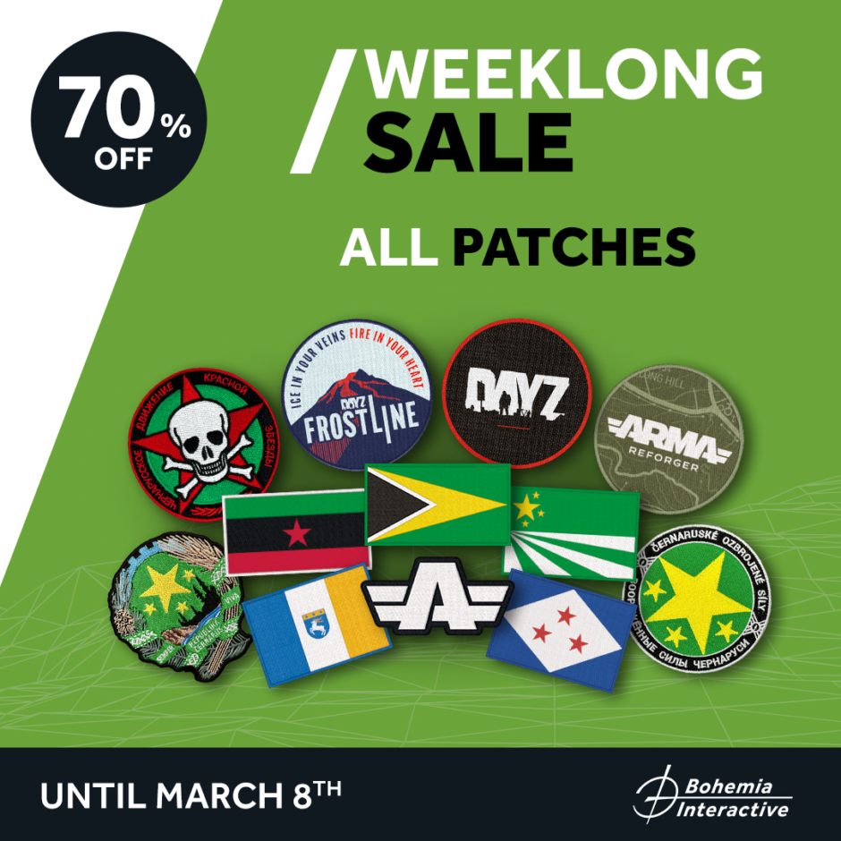 Bohemia Interactive公式ストアでは 公式ベルクロパッチシリーズが70%オフ となる期間限定セールが実施されています。