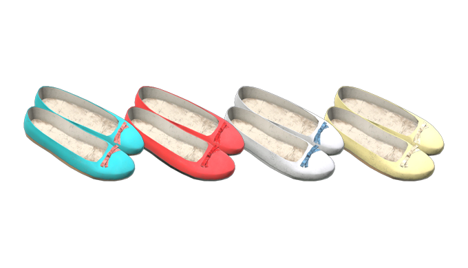 ぺたんこの靴(Ballerinas)は カジュアルかつ装飾性の高い軽装向けの靴 です。