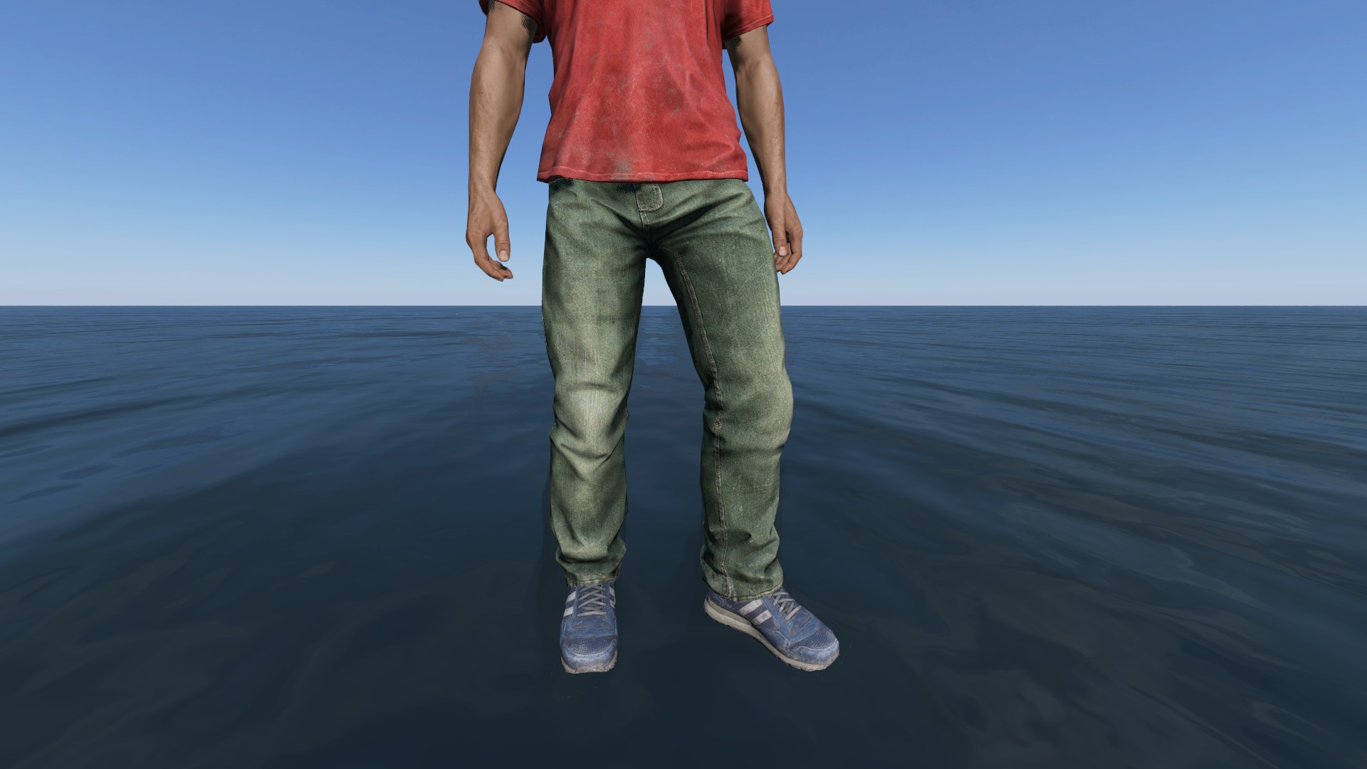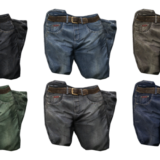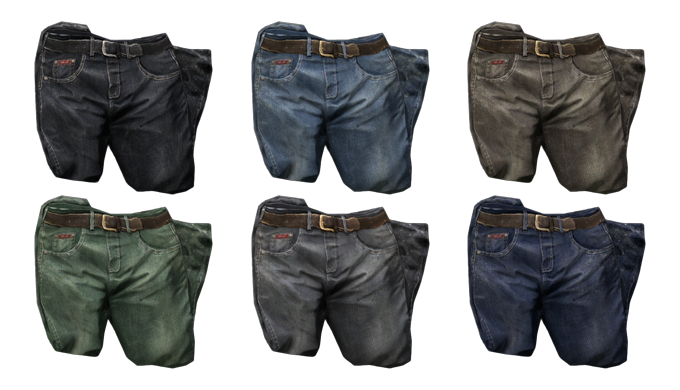 デニムのズボンで、ジーンズとしても知られている。どこにでもあるカジュアルで現代的な服で、平均的なズボンと言える。